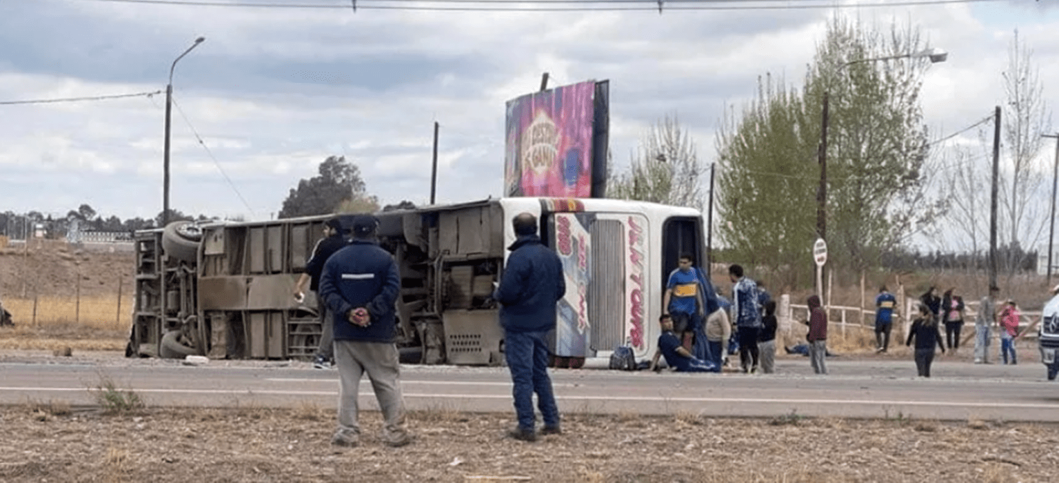Un micro que transportaba a unos 30 hinchas de Boca desde la Capital Federal hacia la ciudad de Mendoza volcó este mediodía en la localidad mendocina de San Martín.